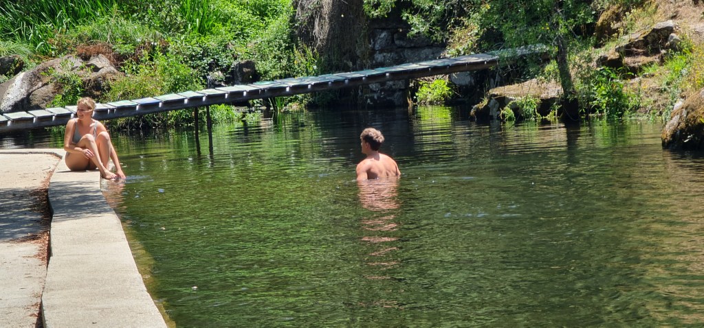 Zwemmen kan bij de watermolen (Quinta Moinhos Da Ponte) aan de romeinse brug en op 5km in de rivier / zwemplaats in Vale de Gaios op 10min per auto.